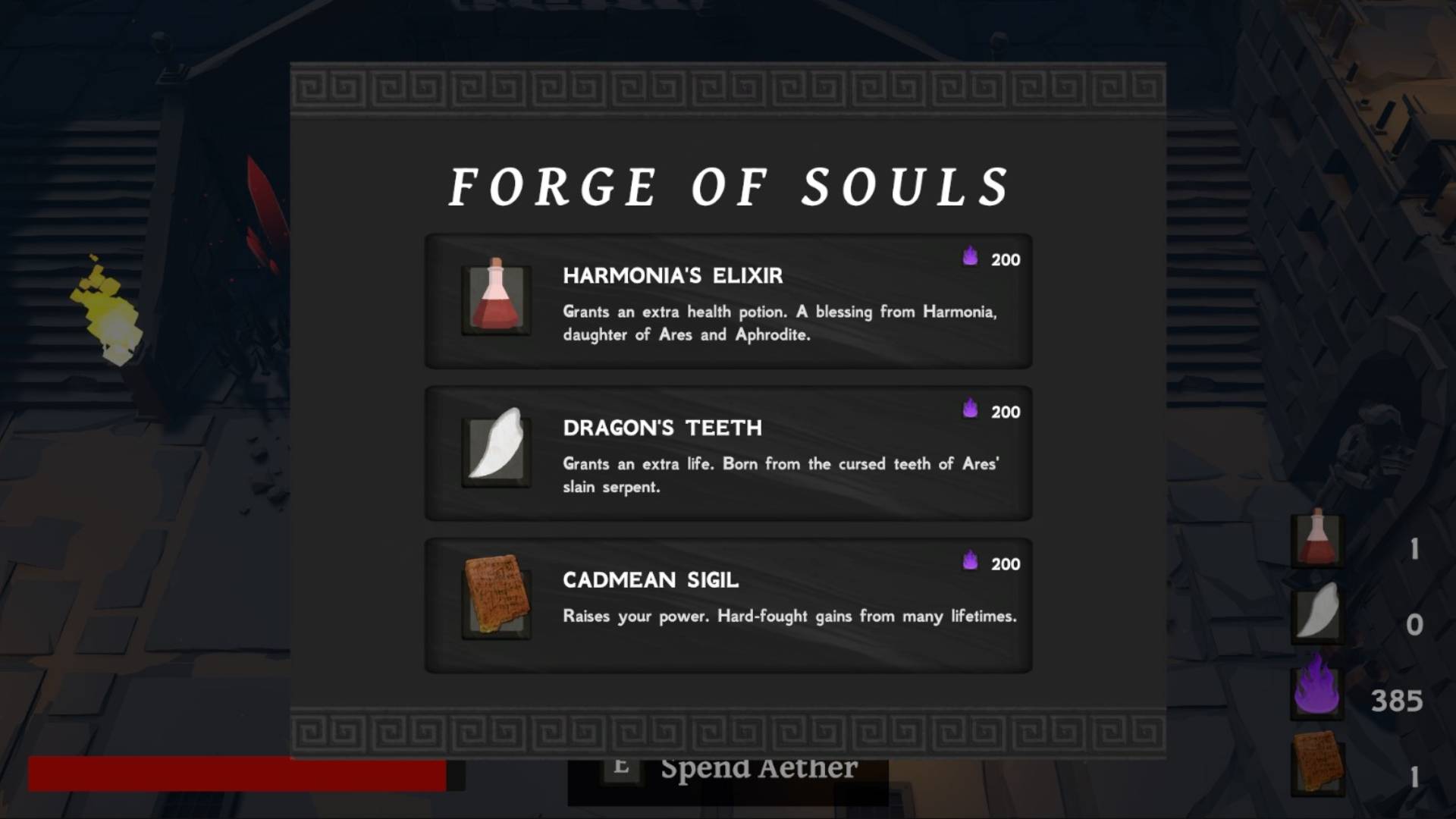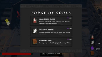 You play as Cadmus, son of Hephaestus, cast into the Underworld by Ares for slaying a dragon sacred to him. Reborn after every death through mystical dragon’s teeth, you must battle through the Underworld's trials to claim your vengeance!